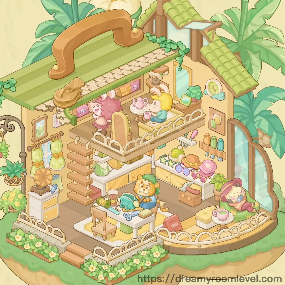 - Start with floor and walls, then add curtains before placing furniture to establish the spa structure in Dreamy Room Level 524