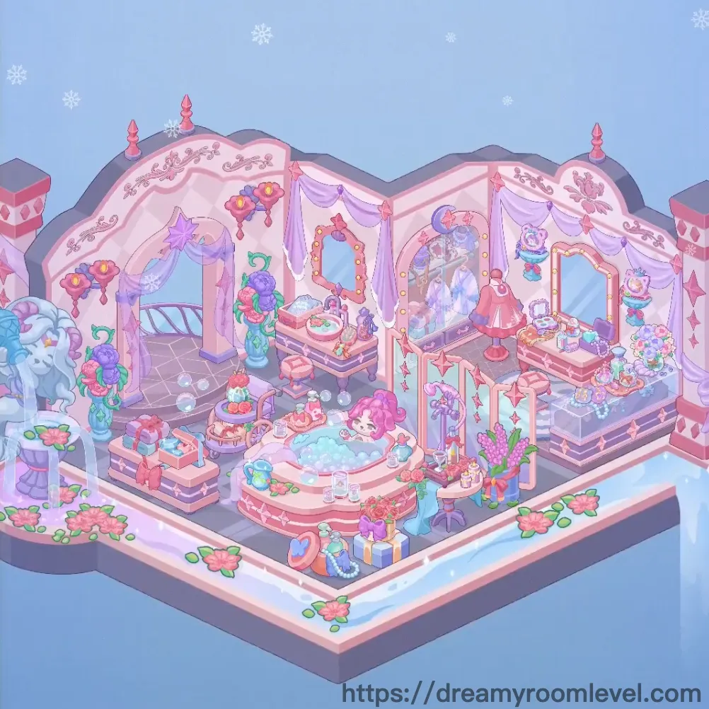 - Start with floors and walls, then add stairs to establish the two-level structure before furnishing in Dreamy Room Level 525